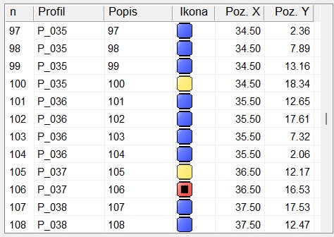 Program má řadu grafických výstupů s polohami jednotlivých anomálií. S možností volby barevných ikon podle typu nalezené anomálie nebo podle hloubky pod zemí.