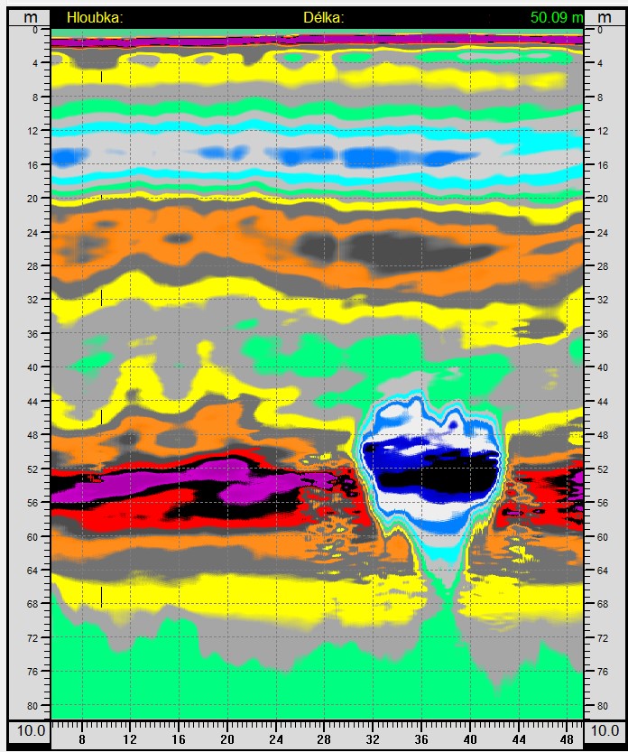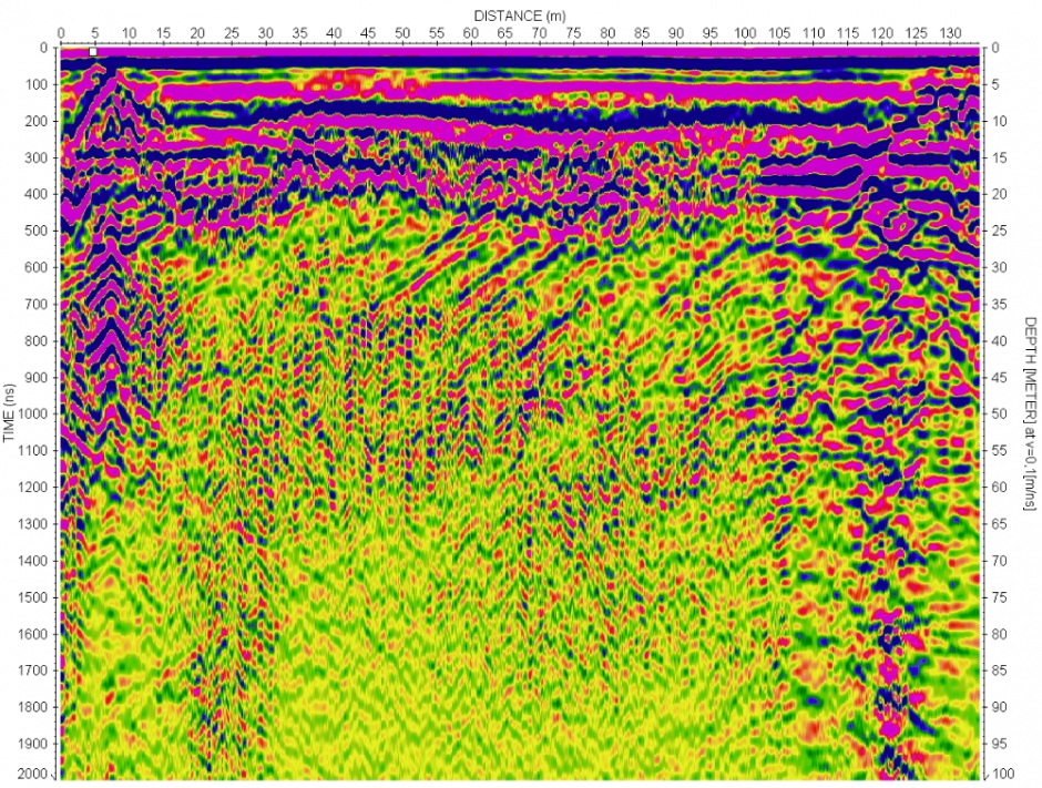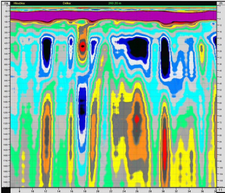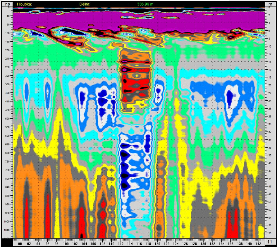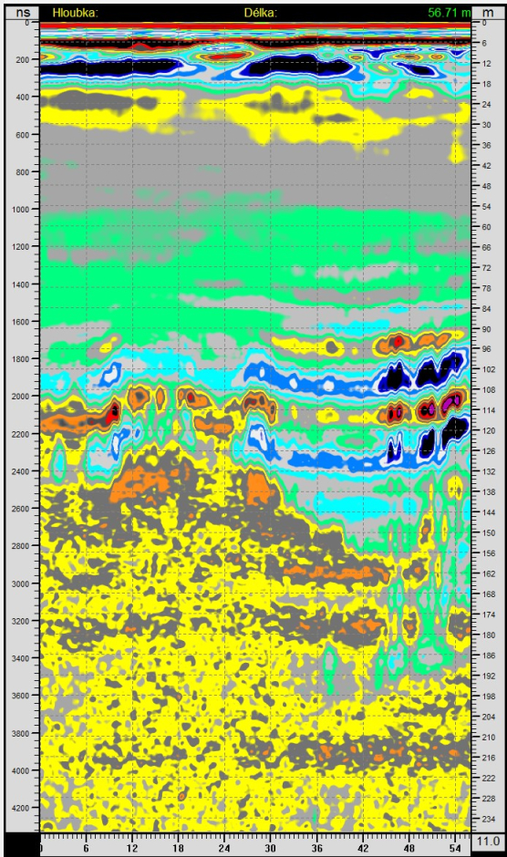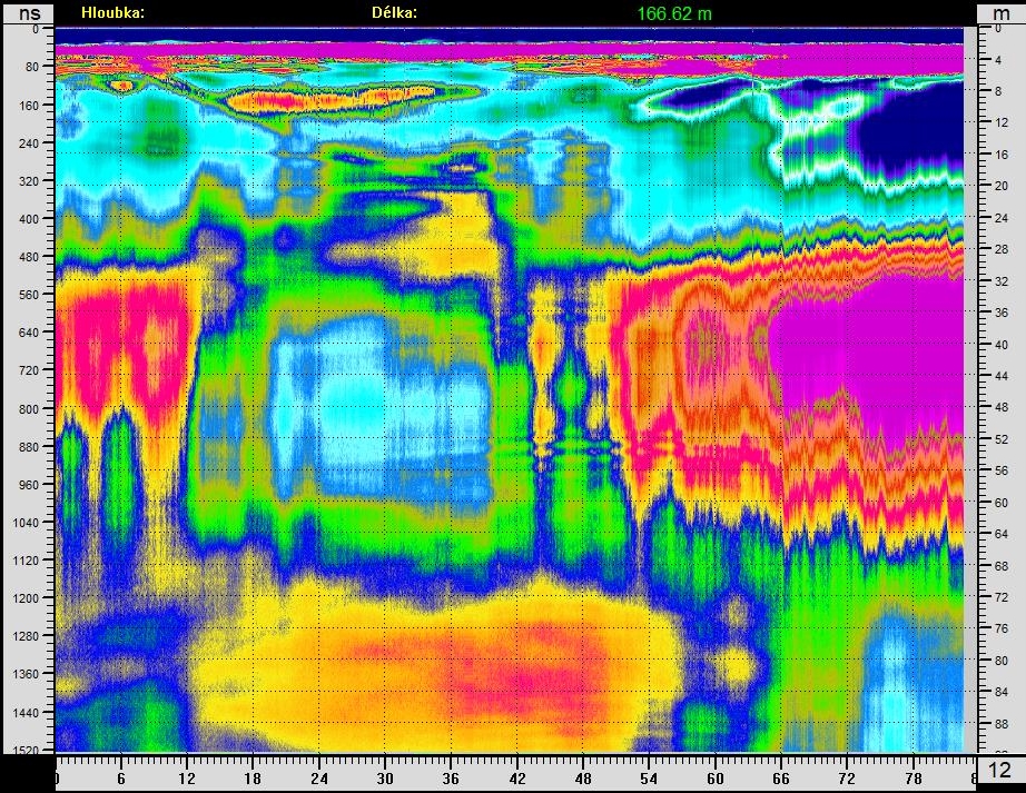 Radarogramy, vrt je na vzdálenosti 110 m