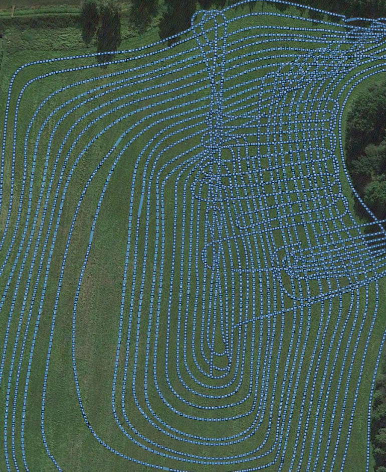 Hradiště v Čechách mívají plochu i několika hektarů. Pokud se archeologové rozhodnou nějaké prozkoumat, většinou vytipují několik menších ploch a ty odkryjí. Může se stát, že minou důležité archeologické objekty a to pak ovlivní i výslednou zprávu. S průzkumem bez jakéhokoliv výkopu jim ale velmi efektivně může pomoci georadar ROTEG. Pokud je plocha sjízdná, lze najezdit zájmovou plochu ve stanovených rozestupech s georadarem taženým autem nebo čtyřkolkou. Za odpoledne se nechá najezdit 10-20 km profilů. Trasy profilů mohou vypadat třeba takto: