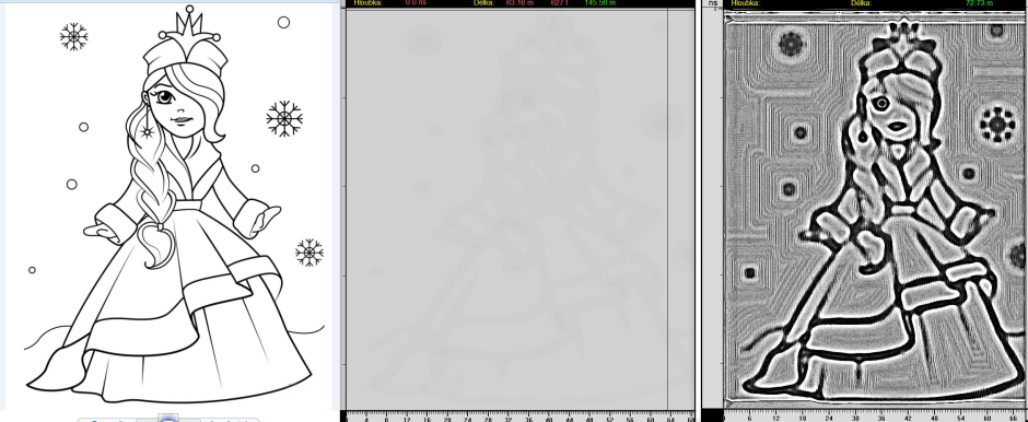 Leden 2023 - do tabulky filtrů jsme doplnili obrazové filtry pro detekci a zaostřování hran. Pomáhají nám zobrazit velmi slabé přechody mezi různými materiály a vykreslit jejich rozhraní. Do programu lze nyní naimportovat nejen data z georadaru , ale i jakýkoliv obrázek JPG. Jak filtry pracují, je vidět na serii tří obrázků níže. Vlevo je originální obrázek typu JPG, uprostřed je stejný obrázek upravený, velmi slabý a v běžném kreslícím programu rozmazaný, naimportovaný do programu Spirio 6. Vpravo je použit filtr pro zesílení a detekci přechodů hodnot a filtr pro zaostření hran. Podařilo se zpětně získat původní kontury a je zde vidět i postup, jak kreslící program rozmazává obraz.